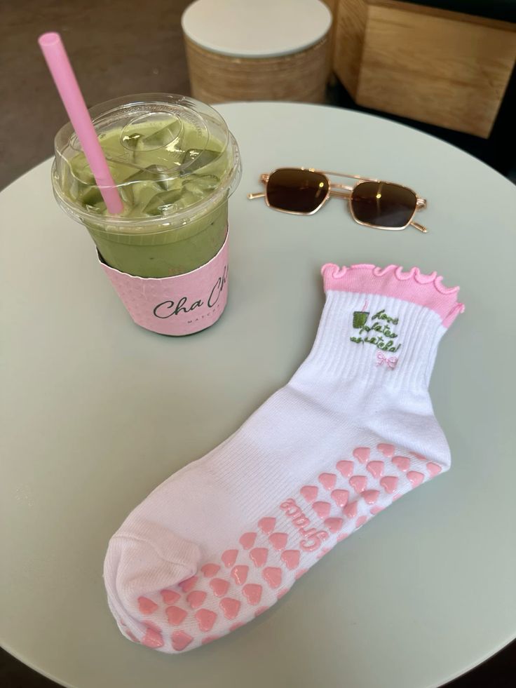 Sip into serenity with our Matcha-Themed Grip Socks. Infused with the calming essence of matcha, these socks are the perfect blend of comfort and style. Ideal for Pilates, yoga, or barre, elevate your workout with a touch of zen.